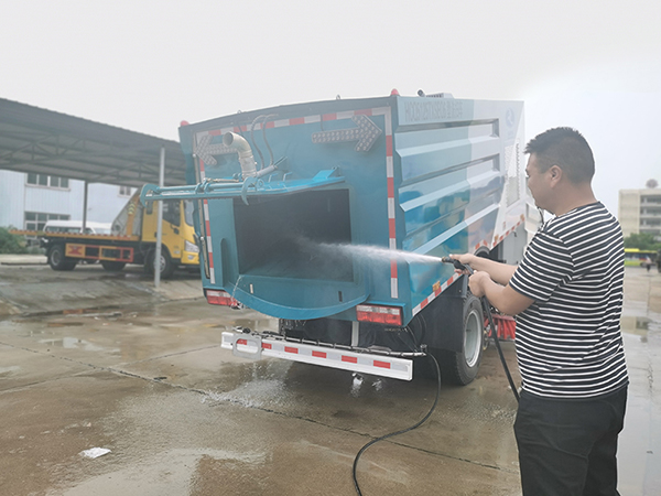 ![]() | 廂體采用傾翻卸料,帶高壓沖洗自潔裝置。垃圾箱自潔裝置可在垃圾箱卸料時(shí)幫助卸料,沖洗附著在箱體內(nèi)壁上的殘留垃圾。 |
