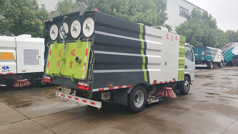湖北五環研發的新型道路吸塵車型是采用東風國六二類原廠汽車底盤改裝,加裝副發動機、風機、清水箱、垃圾箱、中置吸盤,工作視頻探頭,自動脈沖清理功能,液壓系統、專用裝置電控系統和副車架等改裝而成(可加裝左右前掃刷),采用負壓純吸的原理,單向進風(無反吹氣流),實現粉塵只進不出、無揚塵,實現PM2.5零排放,適用于城市道路、高架橋、廣場、機場、碼頭、廠區等水泥混凝土路面和瀝青路面的機械化保潔作業。